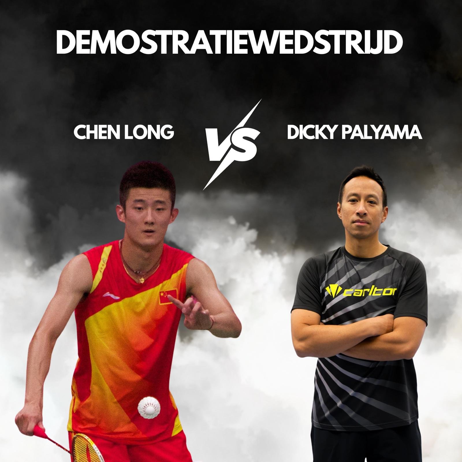 Badmintonlegenden Dicky Palyama en olympisch kampioen Chen Long in actie tijdens unieke badmintonclinic